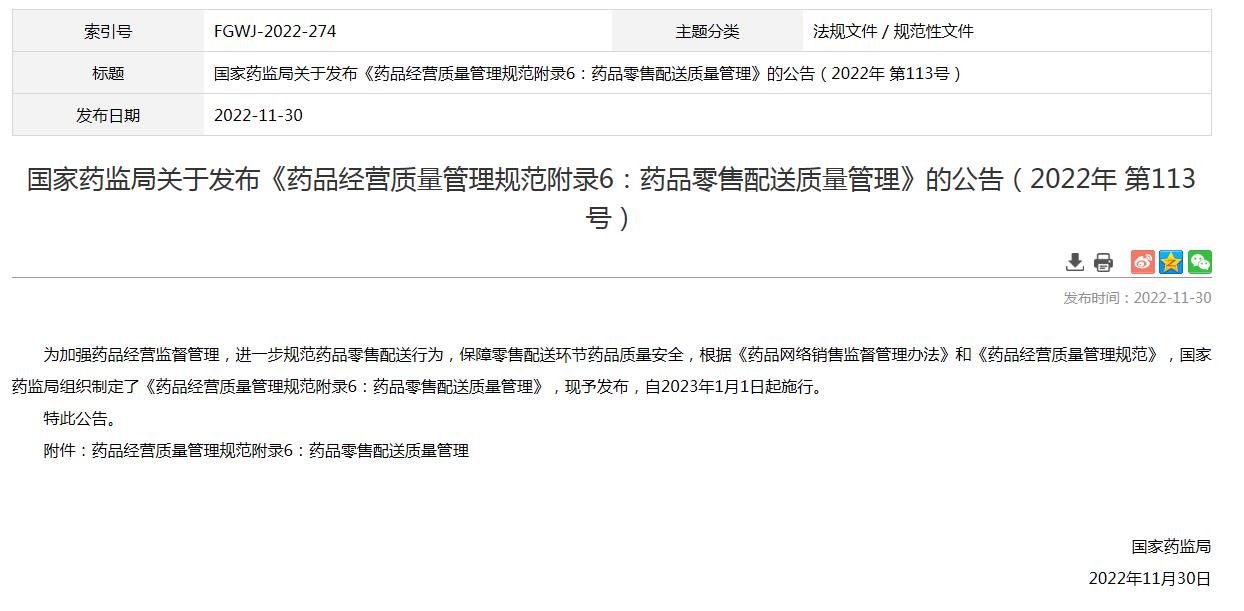 藥品經營質量管理規范 附錄6:藥品零售配送質量管理