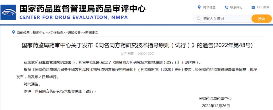 同名同方藥研究技術指導原則(試行)